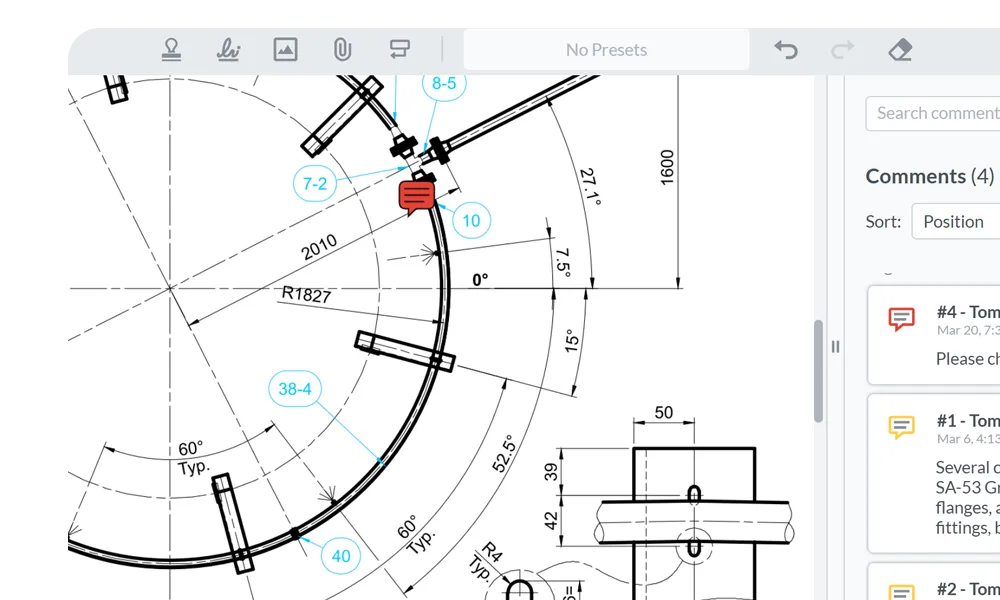 Leave comments directly on documents, including PDF files, CAD designs, and BIM 3D-Models, without the need to download files, making collaboration seamless and efficient