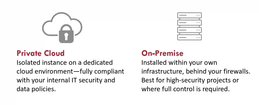 • Private cloud, or on-premise deployment