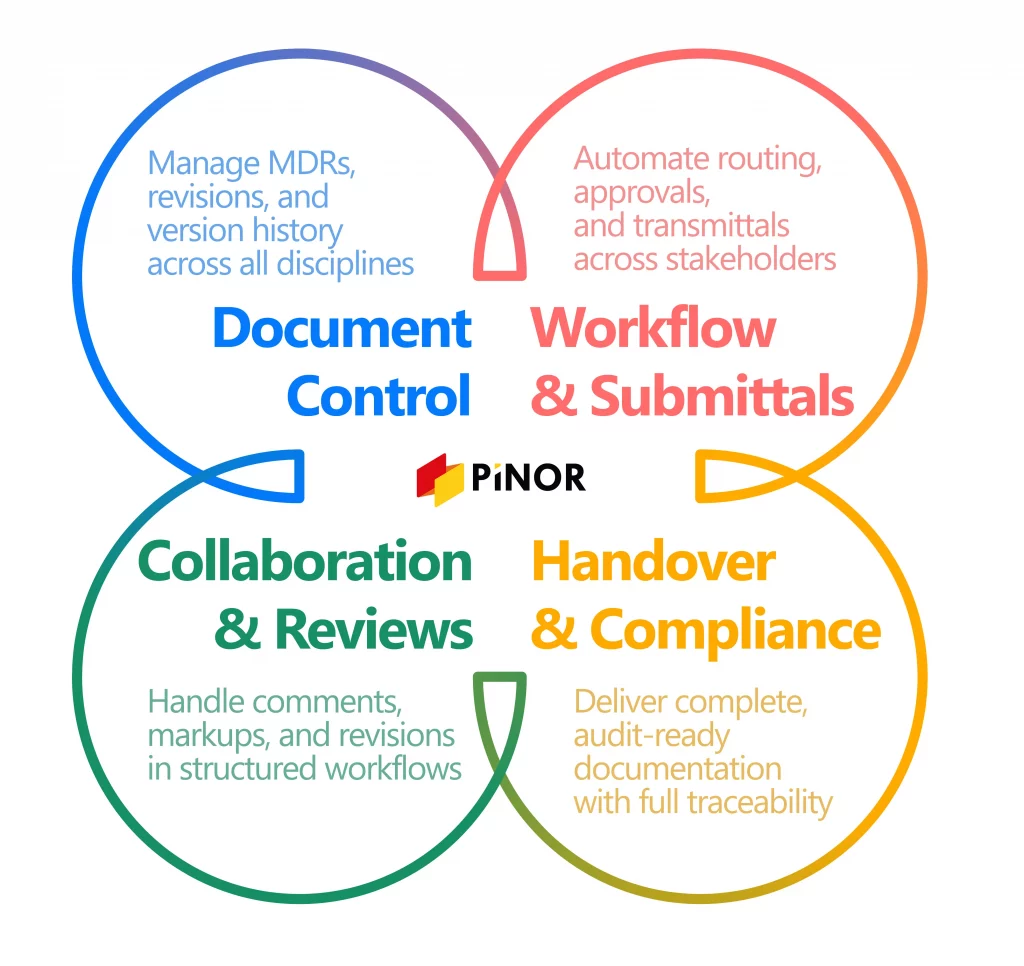 PiNOR is an EPC-native document management platform that unifies document control, workflows, and project coordination. It connects all stakeholders—from engineering companies to vendors and project owners—into a single, structured system.